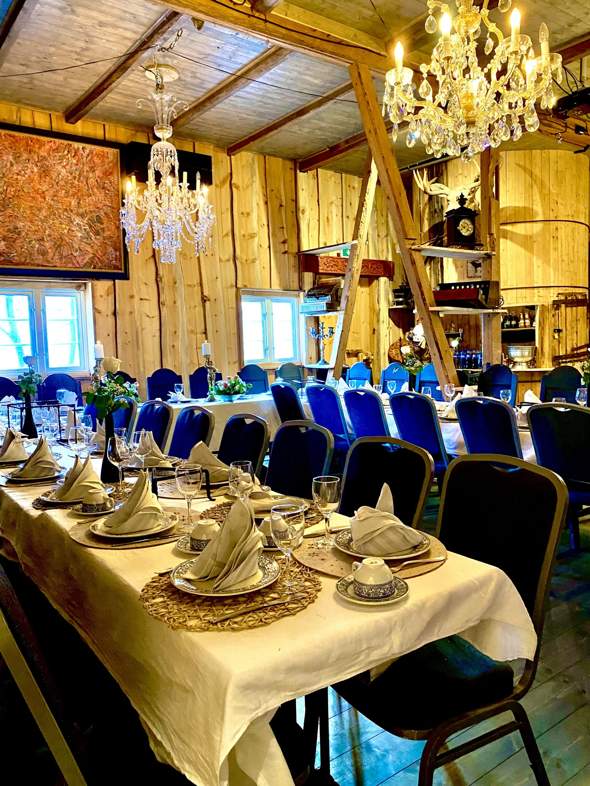 På Hesla Farm inviterer vi deg til å oppdage Fjøset med krystallkroner – et rom som forener tradisjon og eleganse. Tidligere et fjøs, er dette rommet omhyggelig omgjort til å være en ideell ramme for ulike typer arrangementer
