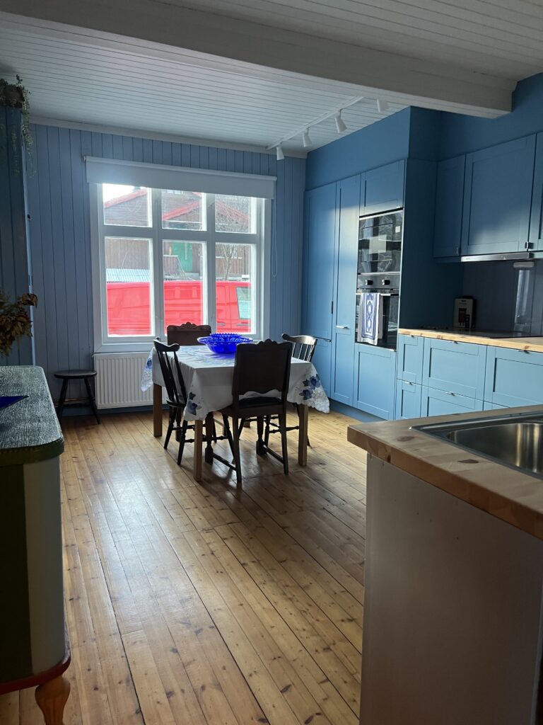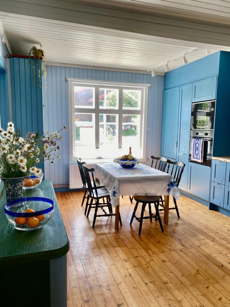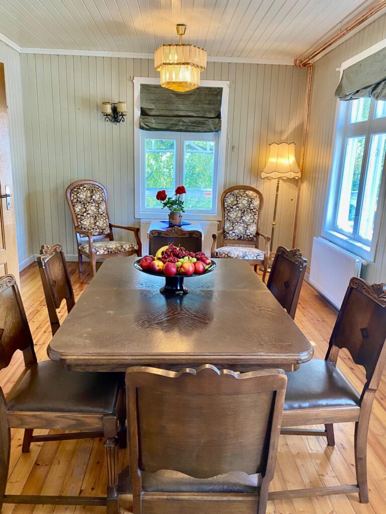 If you’re traveling with a large family or a group of friends, Doktorgården 1 is the perfect choice. This spacious accommodation can host up to 10 people and features three bathrooms, ensuring comfort for everyone. The interior combines modern amenities with traditional details, creating a warm and inviting atmosphere. Large windows let in plenty of natural light, and there’s ample space to relax after an eventful day exploring the surrounding area.