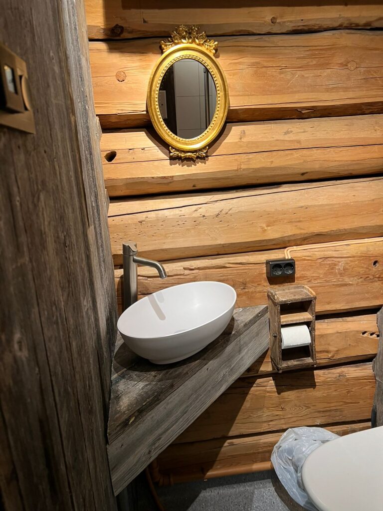Innvendig bevares den autentiske karakteren til den originale strukturen, med detaljer i tre som fremhever bygningens rike arv. Samtidig gir det funksjonelle og koselige designet en varm og innbydende atmosfære.